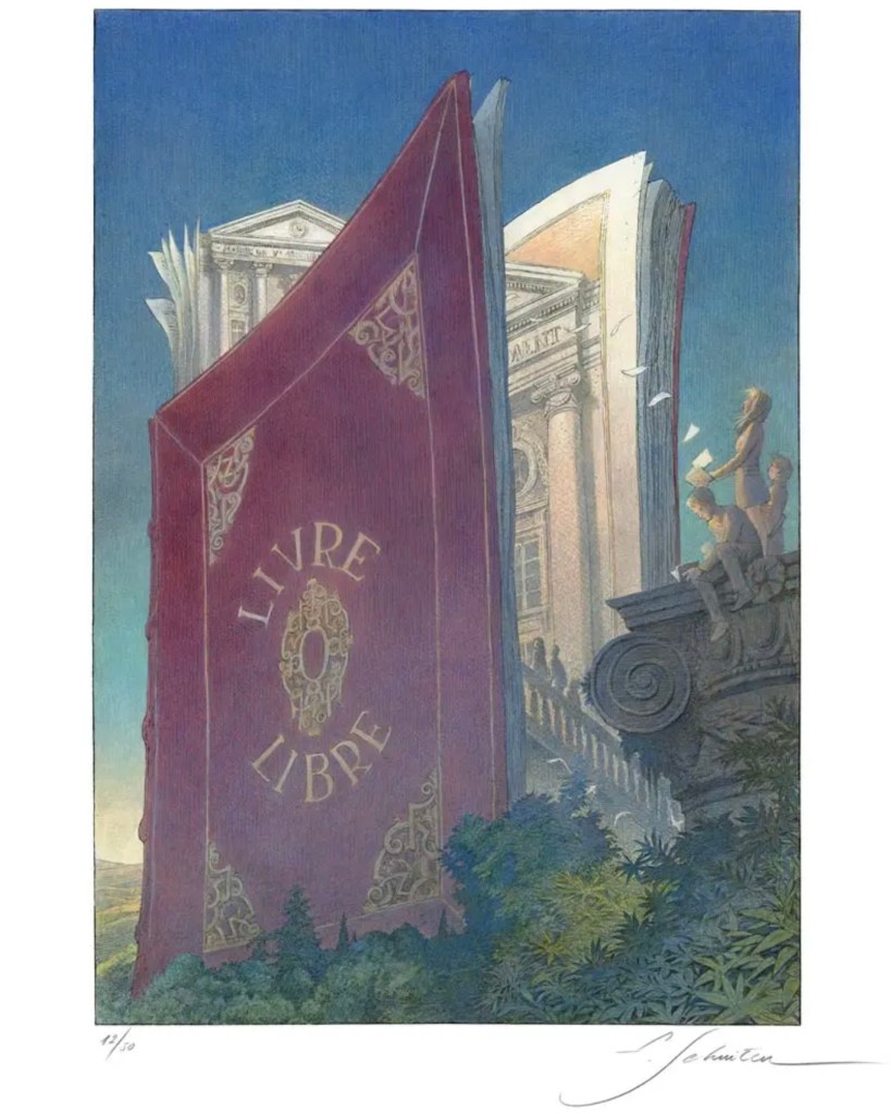 Petits, donc plus discrets voire absents des rayons des librairies, mais pourtant pas dénués de compétences pour repérer les talents émergents, ces éditeurs de l’autre livre méritent bien les trois jours de salon qui leur sont consacrés place du Panthéon. L’édition 2025 de ce salon s’offre une affiche tirée à 50 exemplaires numérotés et signés au crayon de la main de l’artiste François Schuiten, auteur, illustrateur et scénographe de bande dessinée franco-belge. Cette affiche collector (300€) est en vente via ce lien et vous sera remise lors du salon: https://lautrelivre.odoo.com/shop/estampe-de-francois-schuiten-numerotee-et-signee-4#