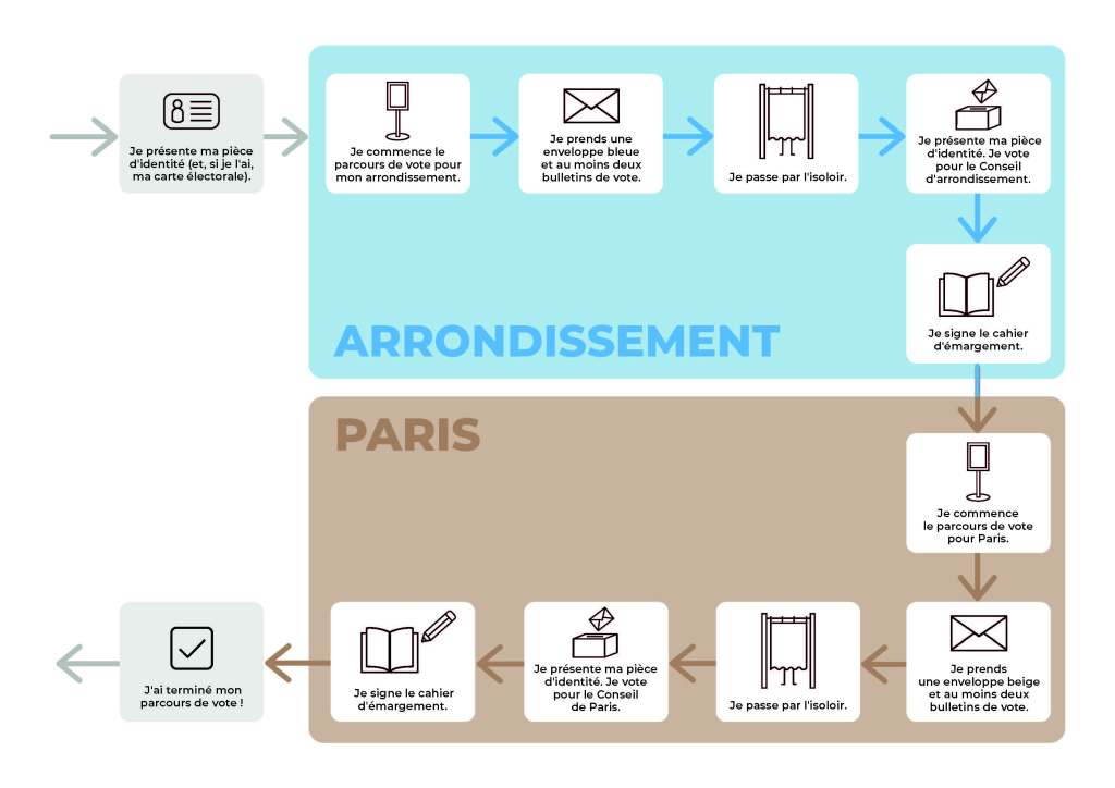 Jusqu’en 2020, lors des dernières élections municipales, à Paris, le scrutin se déroulait par arrondissement afin d’élire les conseillers d’arrondissements et les conseillers de Paris. Par la suite, seuls ces derniers élisaient le maire de Paris.